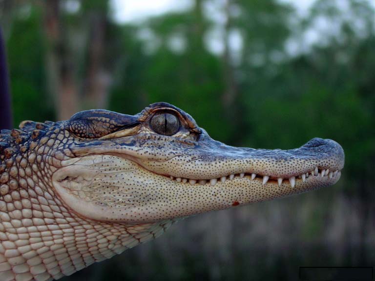 The American alligator is the largest reptile in North America. It has a long, armored body with thick scales or bony plates called osteoderms or scutes.