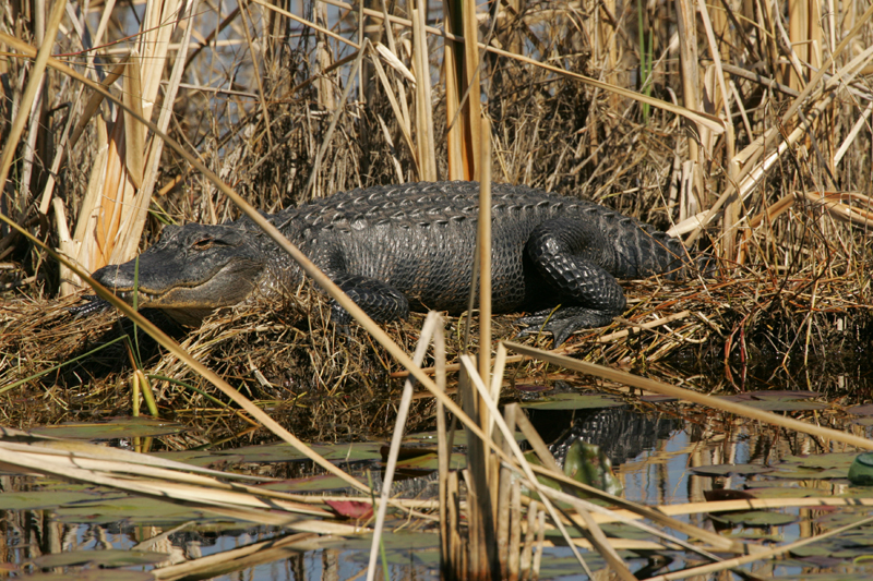 The American alligator can be found in a variety of freshwater habitats including rivers, marshes, swamps and lakes.