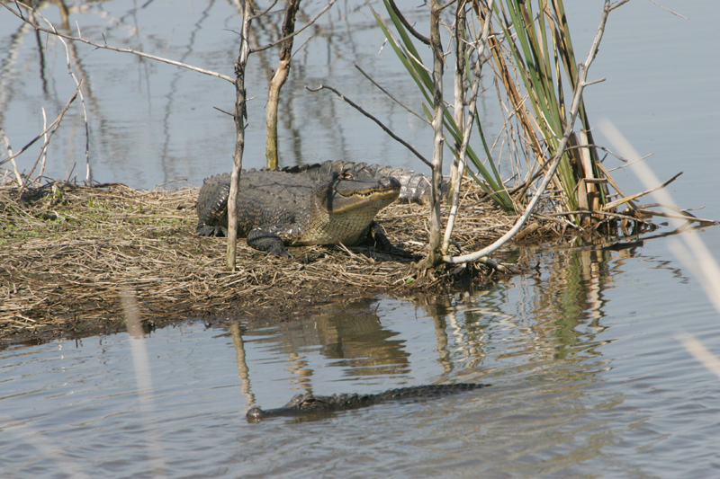 The American alligator was once hunted for its meat and skin. Its population once has decreased so dramatically that it was listed as an endangered species. Today, its population has increased and it is listed as a threatened species. It is listed as threatened, not because its numbers are dangerously low, but because it looks so much like the American crocodile, which is an endangered species.
