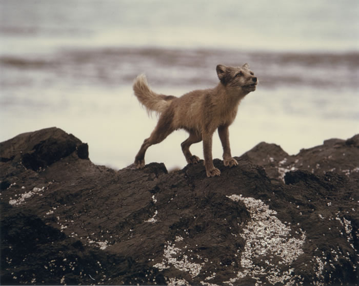 Arctic FoxIn the summer, the arctic fox lives in the tundra at the edge of forest. In the winter, it is found on ice floes where its white coat serves as camouflage. Its den is usually a burrow in a hillside or a bank. The burrow has more than one entrance. In the winter, the fox often makes its den in a snowbank!