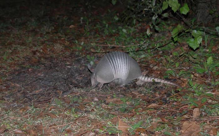The nine-banded armadillo can be found in bottomland hardwood forests, scrub and brushlands. It prefers areas with soft soil that it can burrow into. It is usually found near water sources like streams, creeks and water holes. The armadillo may have more than one burrow.