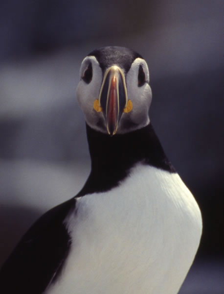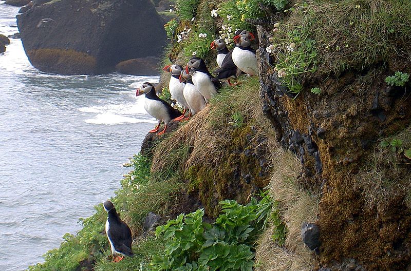 The Atlantic puffin is found on rocky coasts in the Northern Atlantic Ocean during the breeding season and on the open ocean in the non-breeding season. |