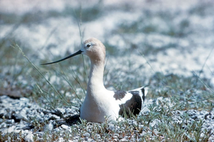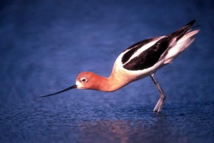 The avocet lives in freshwater marshes and shallow marshy lakes. It breeds in salt or brackish marshes. It may move to coastal areas in the winter.