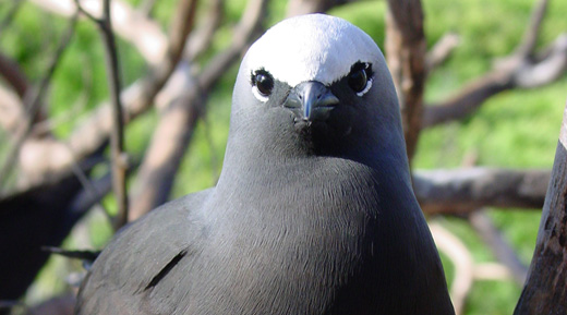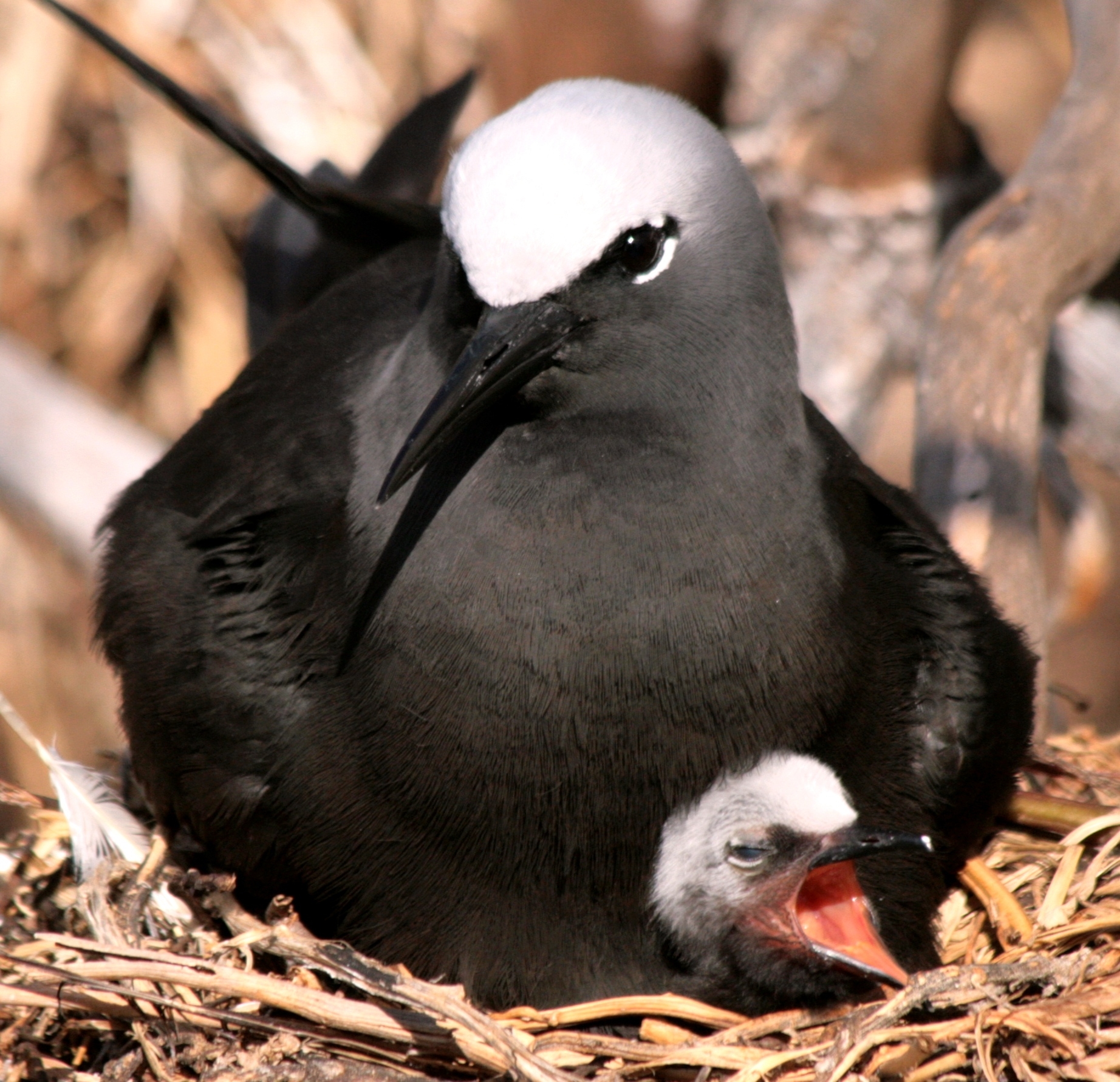The black noddy's diet is made up of small fish and aquatic invertebrates that are found close to the surface of the water.