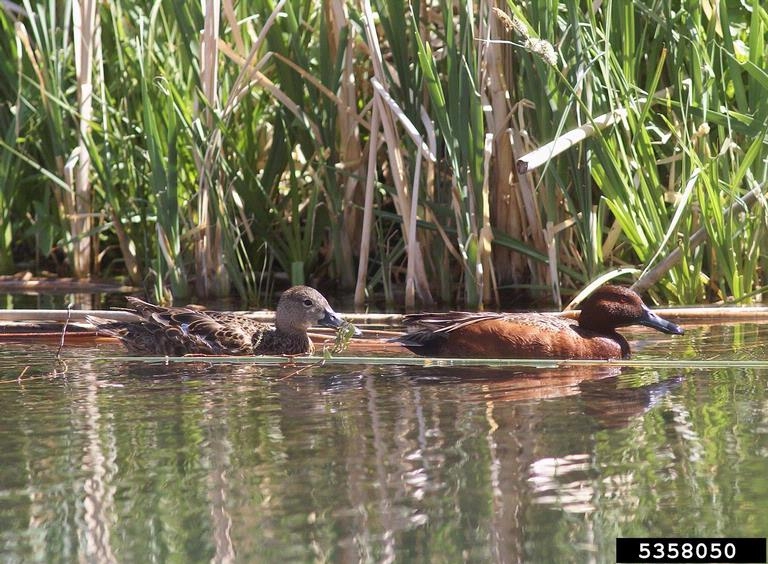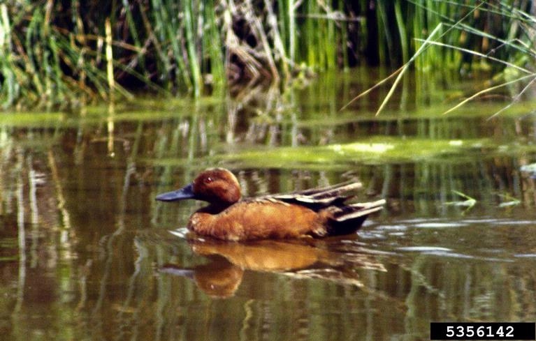 The cinnamon teal can be found in shallow ponds marshes, lakes and streams with low growing reeds and other plants at the edges. |