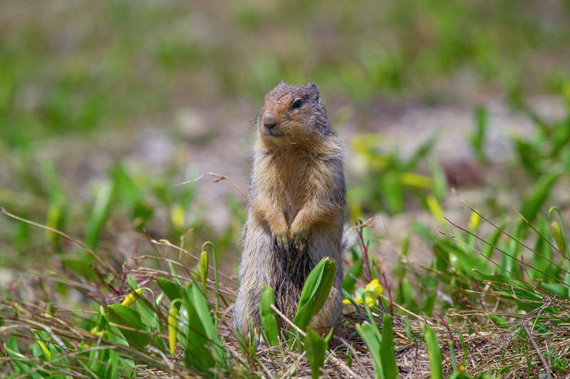 The Columbian ground squirrel can be found in open alpine meadows, dry grasslands and brushy areas.