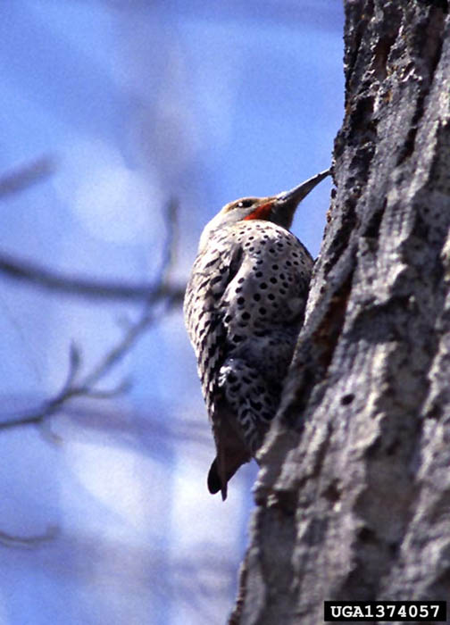 The flicker is the only woodpecker in North American that commonly finds food on the ground. It often forages for ants and beetle larvae on the ground. It will sometimes perch on tree limbs to eat berries. |