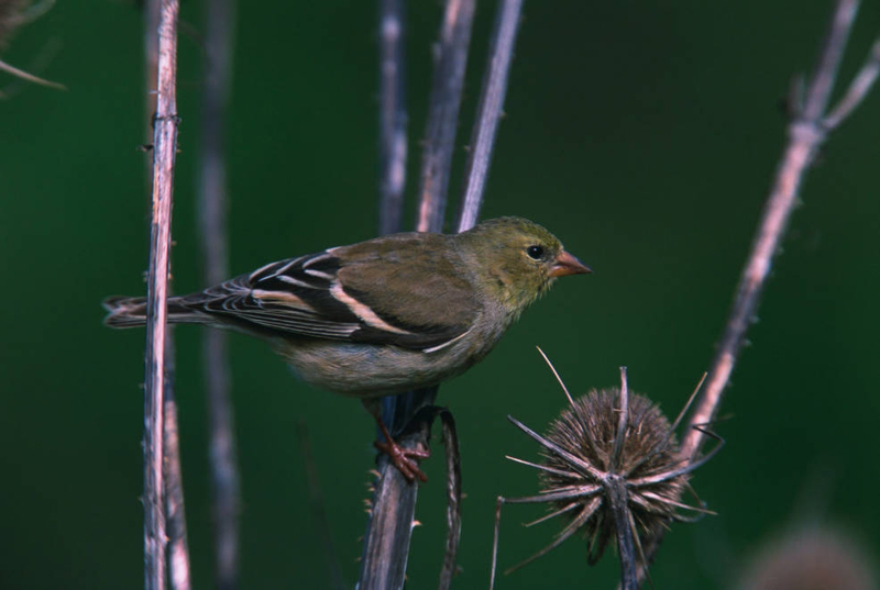 GoldfinchThe American goldfinch lives in weedy fields and  floodplains as well as cultivated land, orchards and gardens.