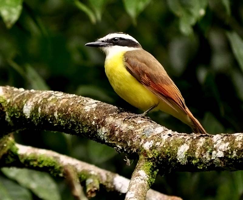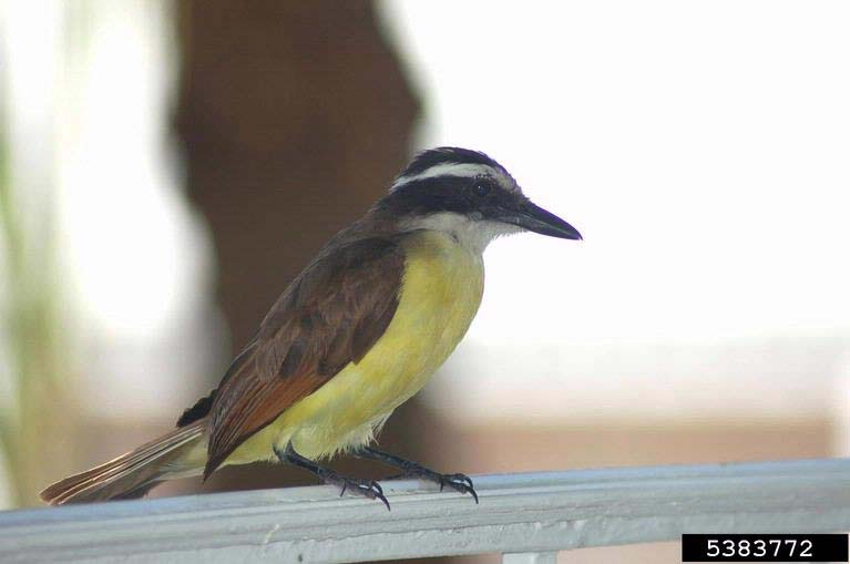 Great KiskadeeThe great kiskadee is a large member of the flycatcher family. It is about ten inches in length.It has black and white stripes on the crown and sides of its head.
