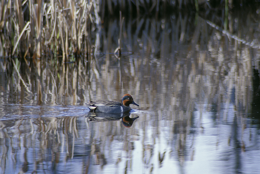 The green-winged teal can be found in marshes, ponds and marshy lakes.