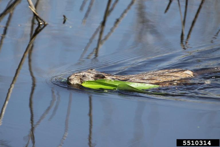 MuskratThe muskrat is found in swamps, marshes, rivers, ponds, lakes, drainage ditches and canals. It prefers an environment with four to six feet of still or slow-moving water and plants like cattails, pondweeds, bulrushes and sedges. It needs open travel channels in the water so it can move around easily. In marsh environments, the muskrat builds a dome-shaped lodge of plants. The lodge can be five feet across and four feet high and has an inner chamber with more than one underwater entry hole. In some cases, the muskrat may build separate lodges for feeding and nesting! In other habitats like rivers, creeks, drainage ditches and canals, the muskrat creates a bank burrow for shelter. The burrow consists of a tunnel and a nesting chamber. There is usually an underwater entrance to the burrow.