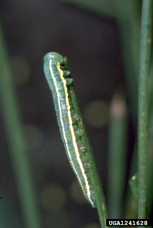 The male white pine butterfly will fly around trees looking for females. The female lays tiny green eggs in a row on a conifer needle. The caterpillars are dark green with white back and side stripes. They feed in groups when they are young and move apart when they are older. The caterpillars drop down to the base of the host tree on a silk thread when they are ready to pupate.