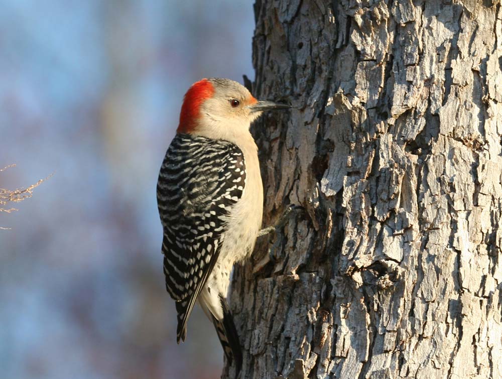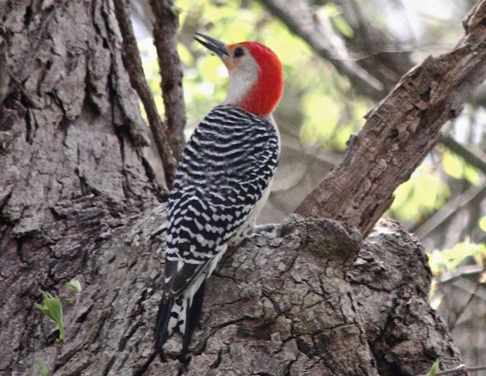The red-bellied woodpecker makes its home in open and swampy woodlands. In the winter, birds in the northern most parts of the range may move south.