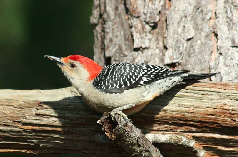 Red-bellied woodpeckers aggressively defend their nesting cavities, but starlings frequently take over their nesting sites.