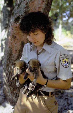 The red wolf once roamed over much of the eastern United States, but by the early 1900s it had disappeared from all states except Texas and Louisiana. The red wolves in those states were mating with coyotes and the population was becoming hybridized. Fearing the species would become extinct, the US Fish and Wildlife Service captured fourteen pure red wolves and started raising them in captivity.