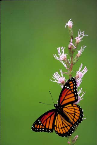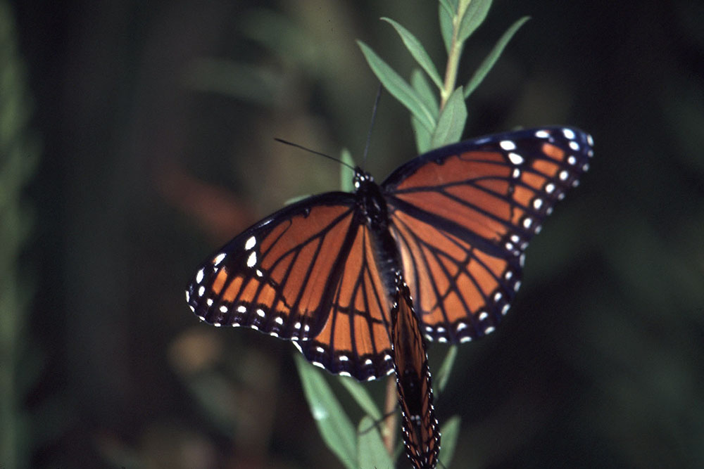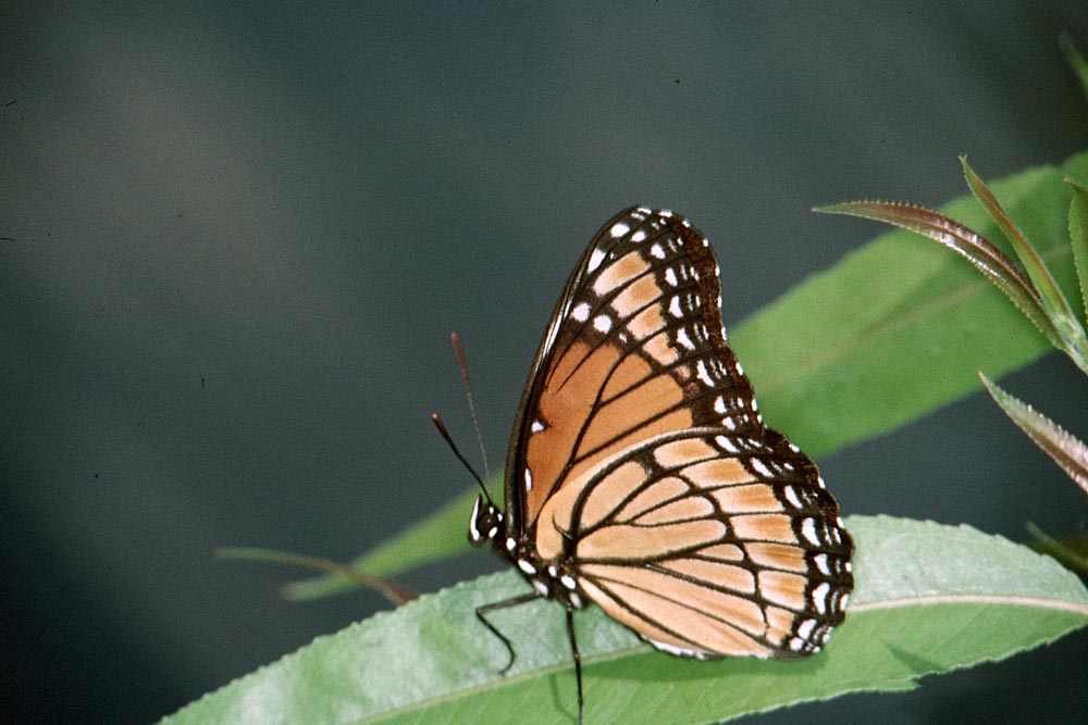 The viceroy butterfly lives in meadows, marshes and swamps and other wet areas with willow, aspen and poplar trees.