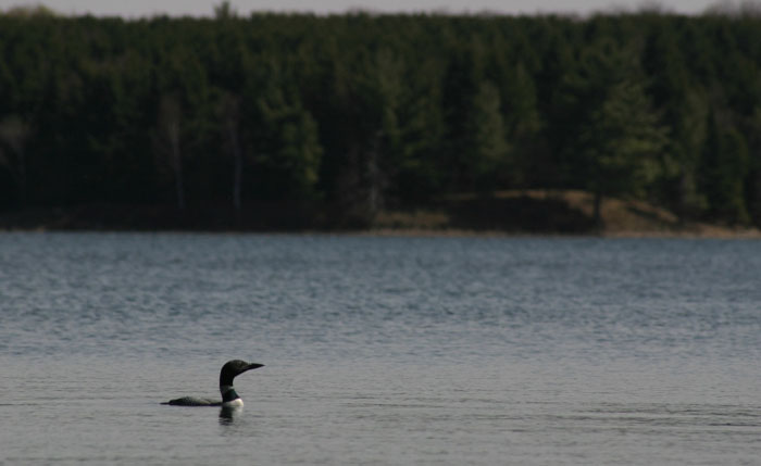 The Common Loon lives on quiet, remote freshwater lakes. In the winter, it is found on lakes, rivers, estuaries and coastlines. The Common Loon is an indicator of water quality because it needs clear water to see swimming fish beneath the surface. The Common Loon breeds in New Hampshire.