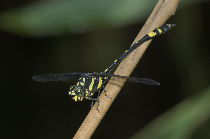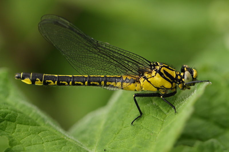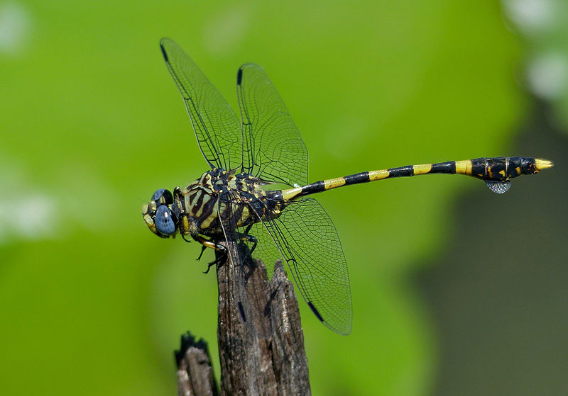 Unlike most species of dragonflies, the clubtail's eyes are widely separated. Clubtails are usually between 1.5-2.5 inches in length. Most species are black with yellow or green markings. Most clubtail species spend up to three years as nymphs. There are around 900 species in this family.