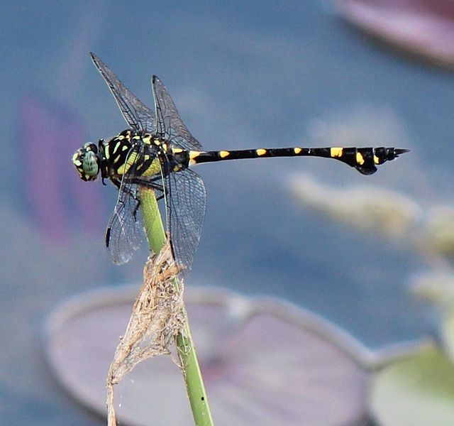 The unicorn clubtail is in ponds, lakes, and small streams with muddy bottoms