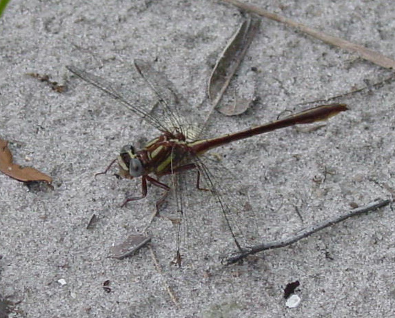 The russet t-tipped clubtail is usually found near silty sand bottomed rivers, streams, and lakes.