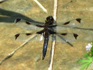 The twelve-spotted skimmer is usually found near ponds, marshy-bordered lakes, bogs, and slow streams.