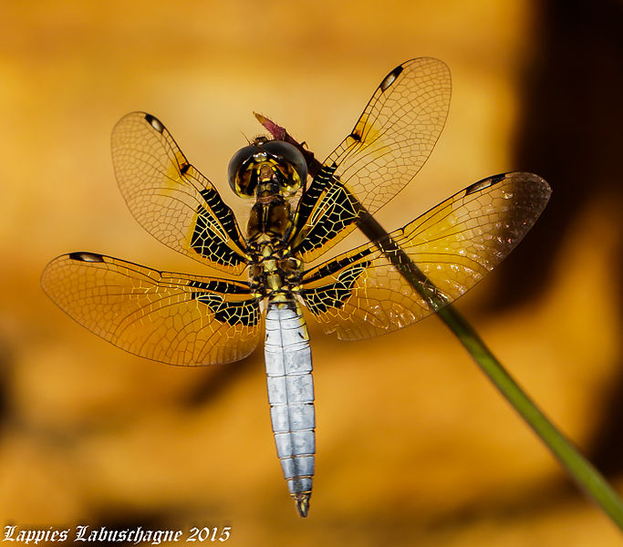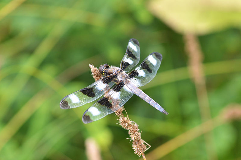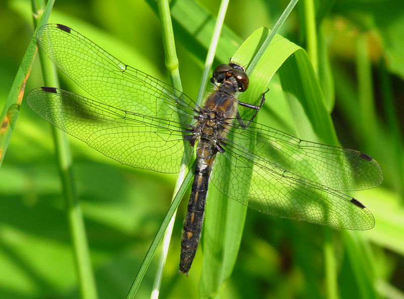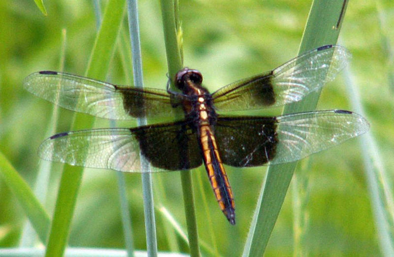 The twelve-spotted skimmer gets its name from the brown to black spots on its wings.