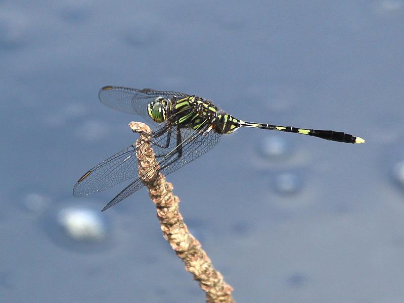 The pin-tailed pondhawk is found near ponds, lakes, ditches, and slow areas of rivers and streams.
