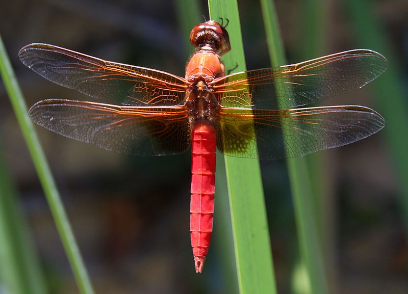 The broad scarlet is found in Africa, southern Europe, the Middle East, and west Asia. It is also known as the common scarlet-darter.