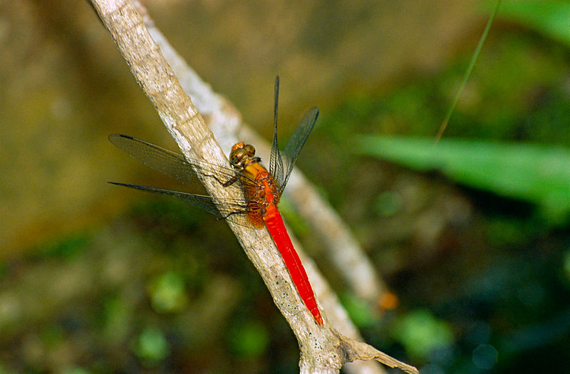 The cardinal meadowhawk is found at small ponds and slow streams.