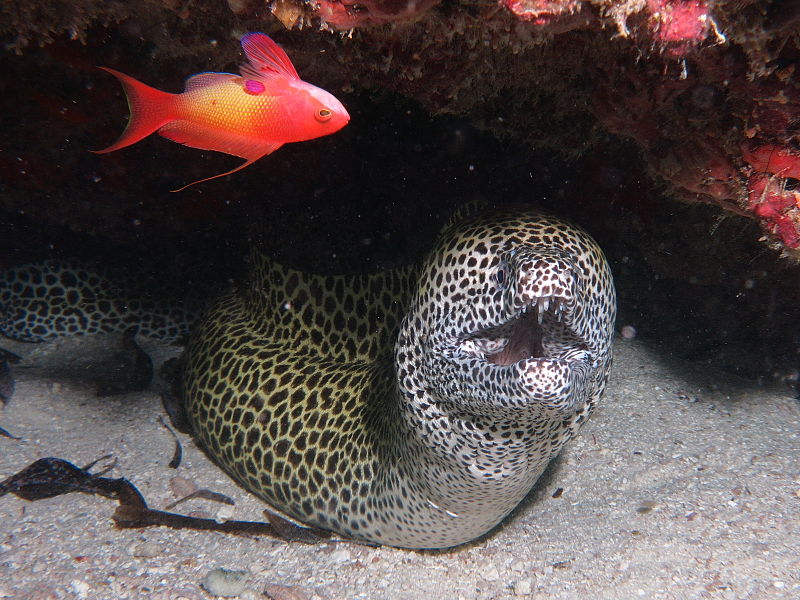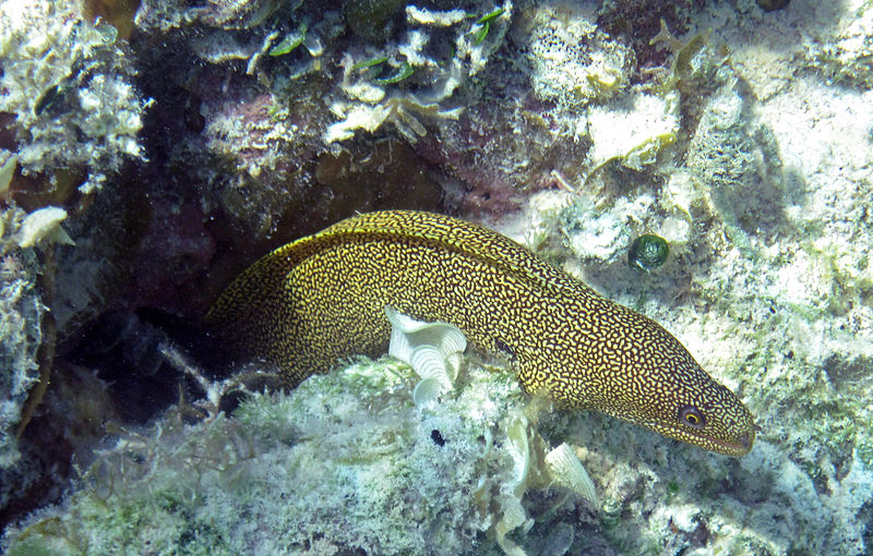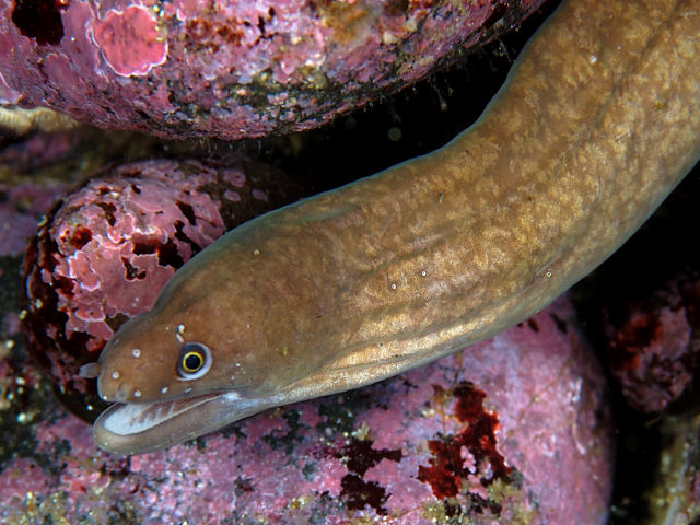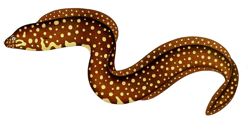 There are close to 200 species in this family of eels. Most species are found in shallow water among rocks and coral. and many species are active at night and spend the day hidden in the rock or coral crevices. Most species are found in tropical and sub-tropical marine environments, a few species can be found in brackish water, and a a handful of species are found in fresh water.