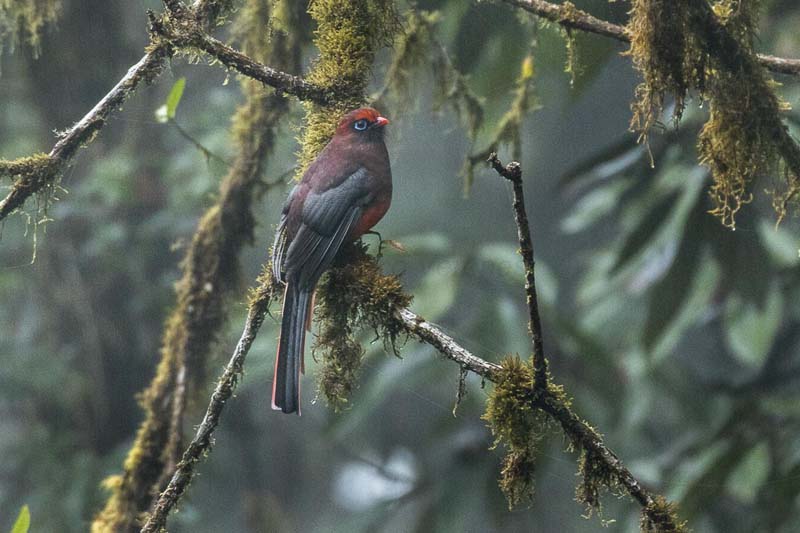 The red-headed trogon is found in Bangladesh, Bhutan, Cambodia, China, India, Indonesia, Laos, Malaysia, Myanmar, Nepal, Thailand, and Vietnam.