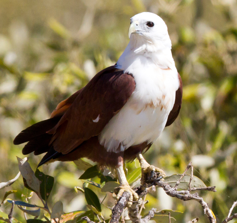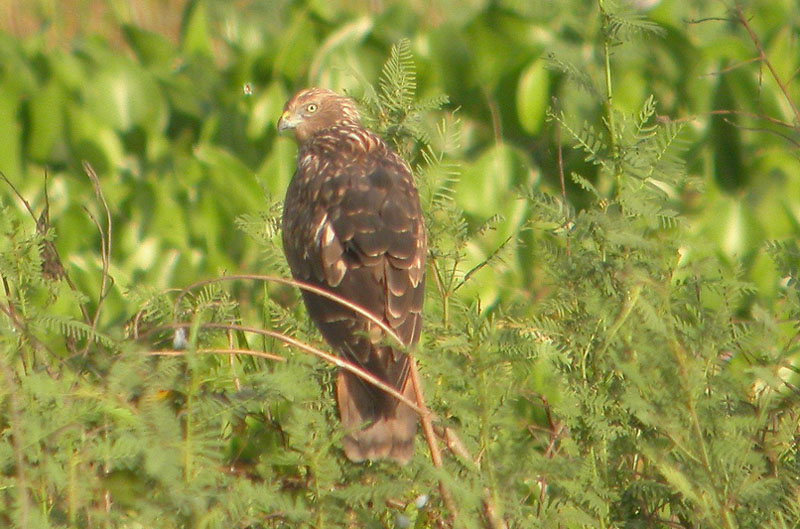 The snail kite frequently perches on bushes.