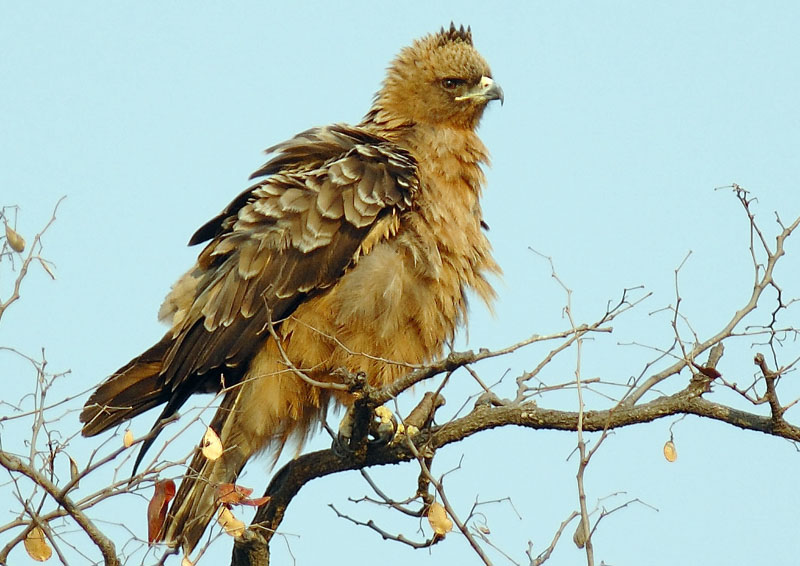 The tawny eagle preys on hares, birds, and lizards.