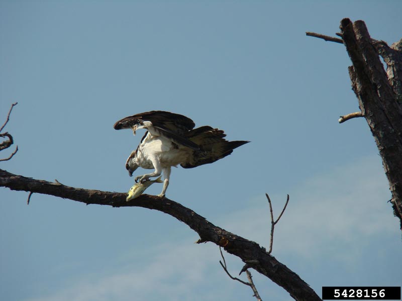 ospreyThe osprey is perfectly adapted for catching fish! It has powerful legs and pale gray feet with sharp talons that help it catch fish. The osprey's feet have rough, pointed scales on them that help the osprey hold onto the fish it catches. Its feet have two toes pointing backwards that also help the osprey grab and hold onto fish.