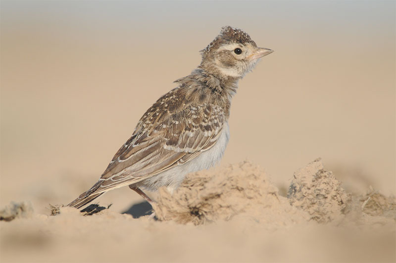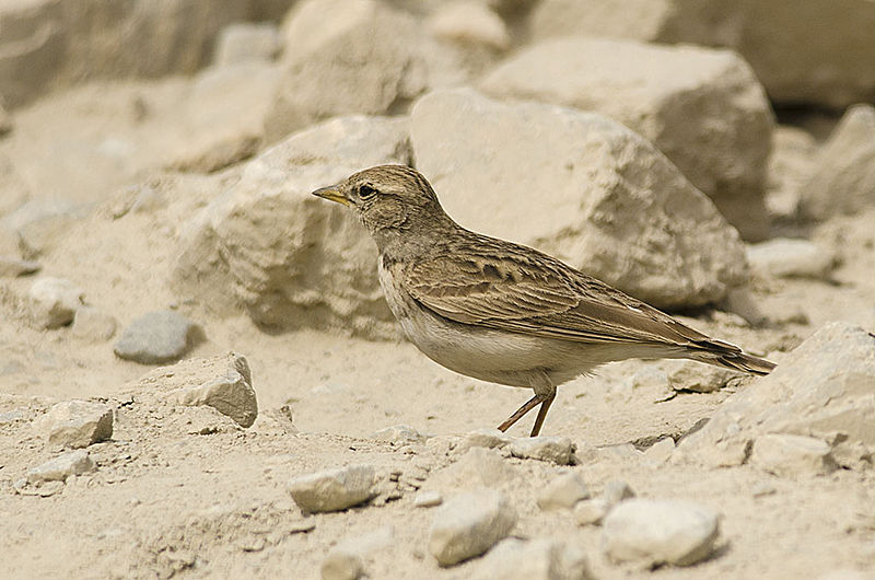 The desert Lark is found in deserts and semi-deserts from the Sahara east through the Arabian peninsula and the Middle East to Iran, Afghanistan, and Pakistan.