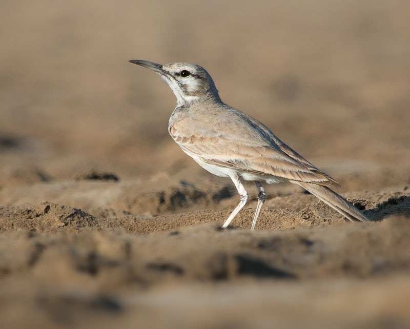 The greater hoopoe-lark is a large Lark with long legs and a down-curved bill.