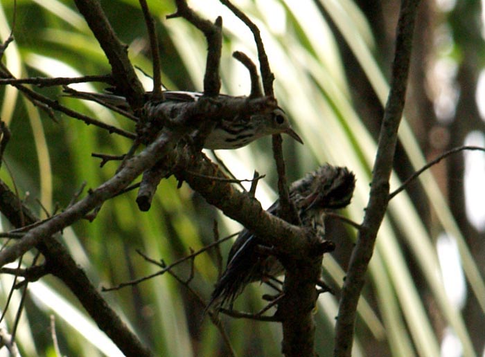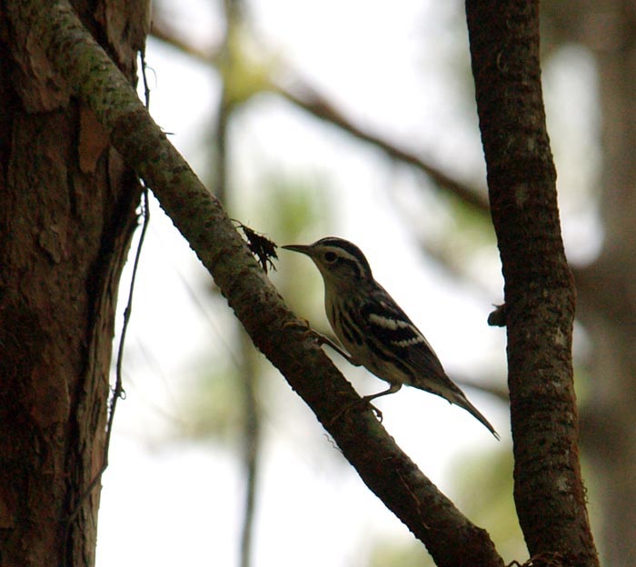 The black and white warbler is more aggressive than most warblers and will attack red-breasted nuthatches, black-capped chickadees, and other birds. |