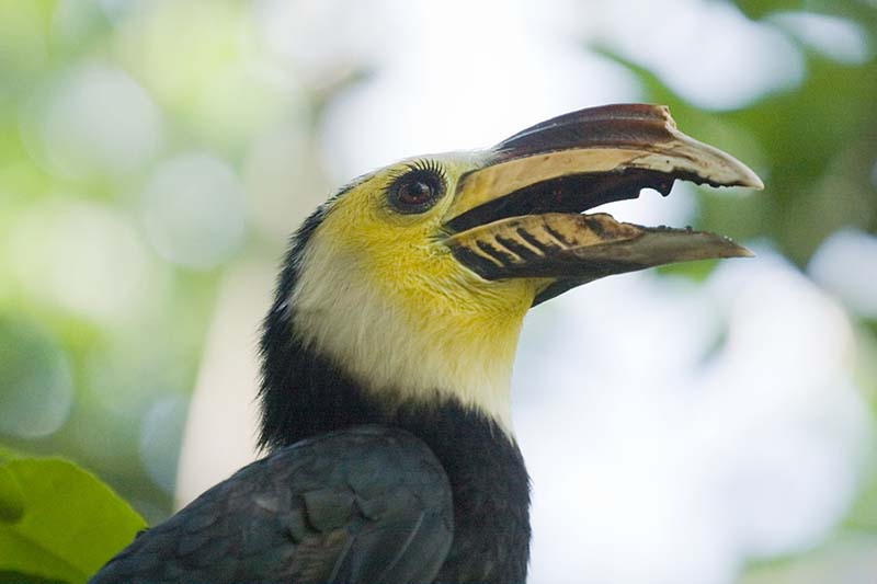 The male Visayan hornbill has a creamy-white head, neck and upper breast.