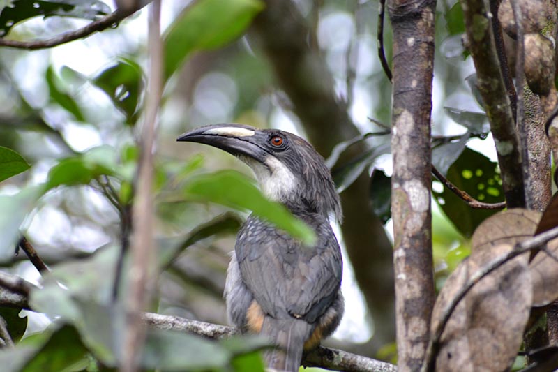 Tickell's brown hornbill is found evergreen and deciduous forests.