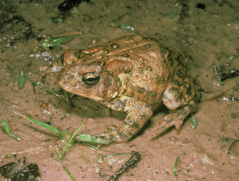 The southern toad is found in sandy areas, marshes, and mixed hardwood swamps.
