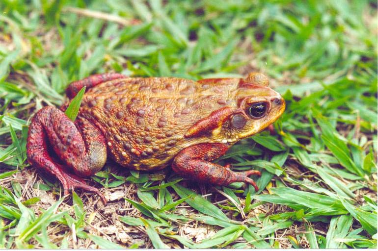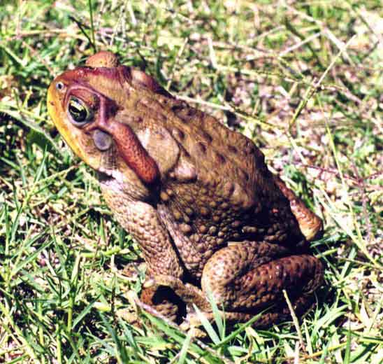 The Cururu toad has glands the excrete poison on the sides of its head and on the back of its legs.