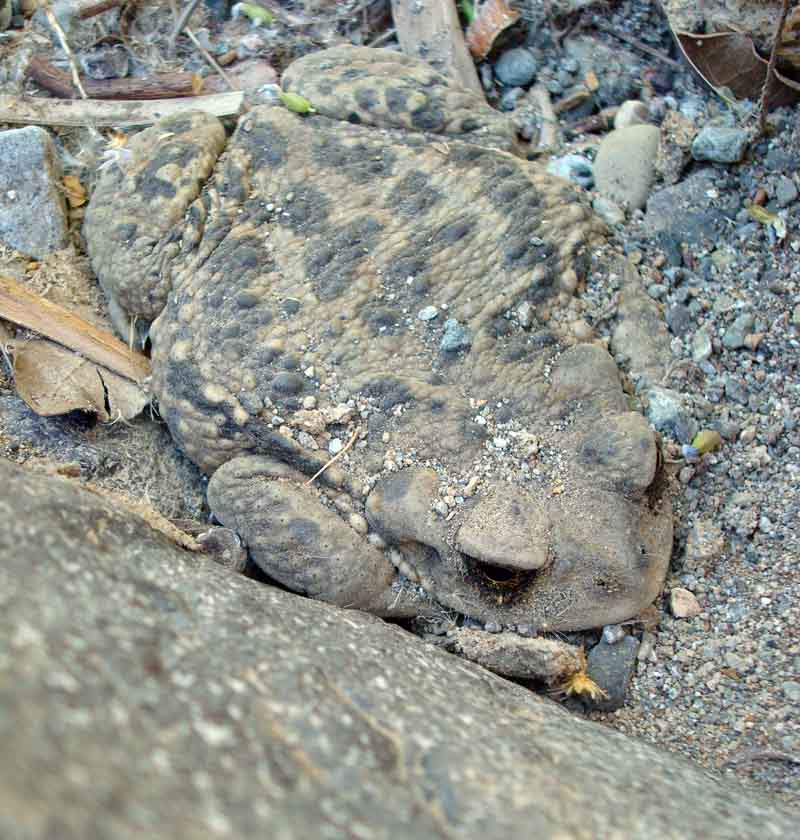 The arroyo toad is nocturnal. It spends the day underground.
