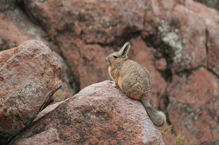 The southern mountain viscacha looks like a long-tailed rabbit.