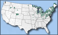 In North America, there are two populations of European skippers. The eastern population is found from Newfoundland, Canada west to eastern North Dakota and south to Missouri, Kentucky, and the Carolinas. The western population is found in parts of Idaho, Montana, Colorado, Wyoming, and