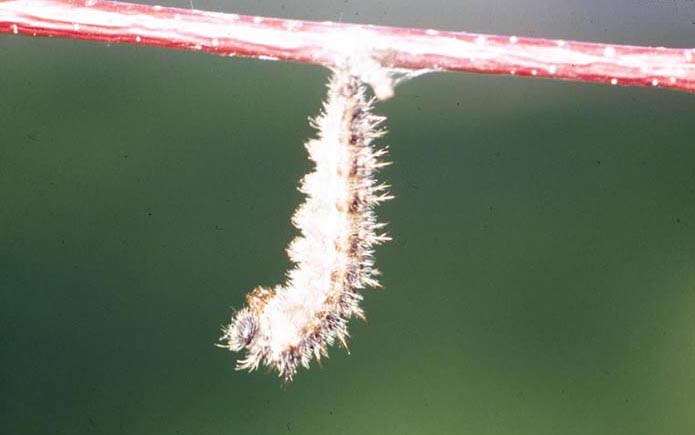 The painted lady eats the nectar of a variety of plants including goldenrod, aster, zinnia, butterfly bush, and milkweed. The caterpillar eats plants in the