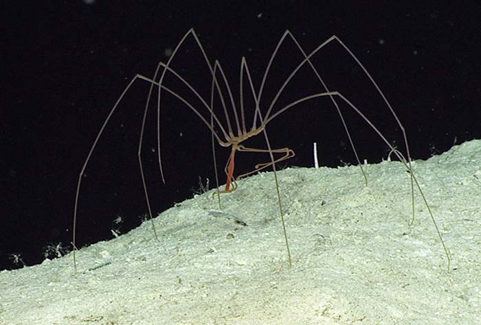Sea spiders have small bodies and long, segmented legs! Sea spiders have a long