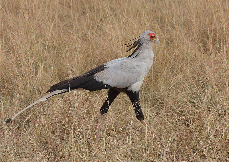 The secretarybird kills reptiles and small mammals with its long powerful legs.