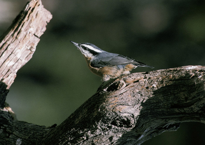 There are 25 species of birds in this family. They are small, stocky birds between 3.5 and 7.5 inches in length. They have long pointed wings; short square tails; and straight, thin, pointed bills. Most species are gray or bluish-gray on their uppersides and white or brown below. Males and females look alike. They are found in North America, Europe, and Asia. They are found in forests where they climb up and down on tree trunks probing for insects in the bark. They can even climb down trees head first! They get the name nuthatch from the way they sometimes stick a seed in a crevice in tree bark and open it with their bills. They may also eat nuts, small fruits, and berries..