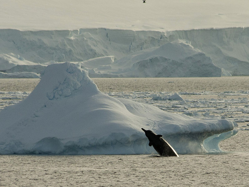 The southern bottlenose whale is found in the waters of the Antarctic icepack in the summer.
